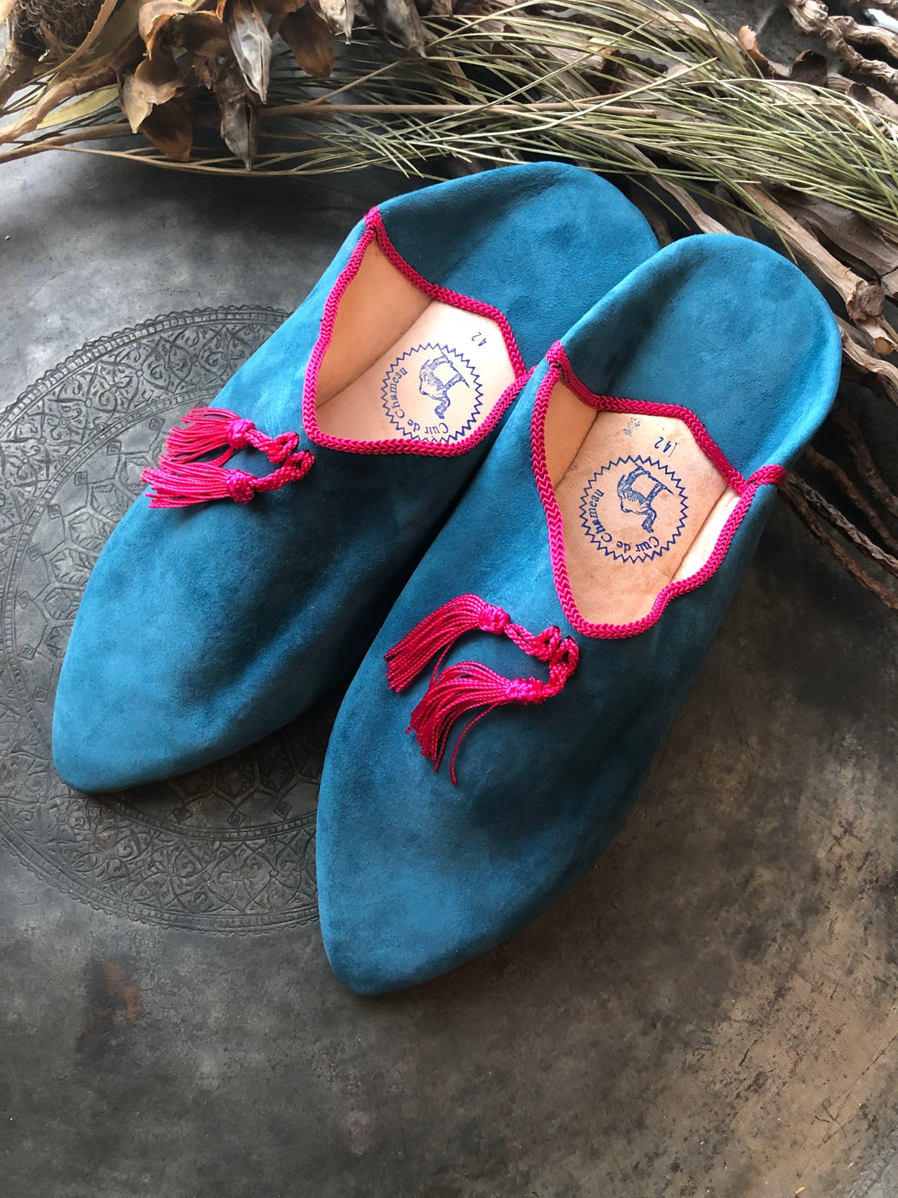 バブーシュ42/外履き/ ブルー/スエード/モロッコ